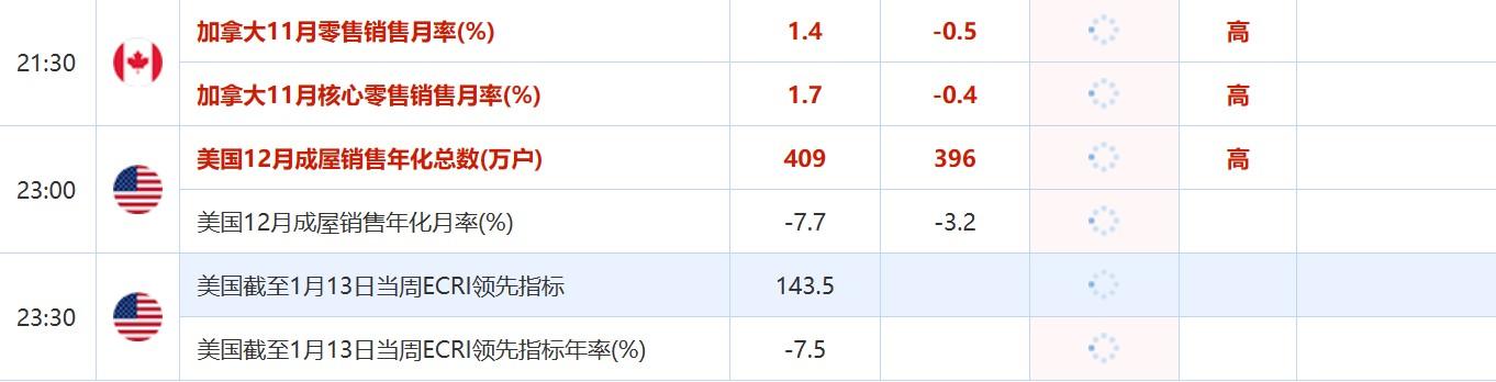 21:30 加拿大11月零售销售月率(%) , 前值 1.4 , 预期值 -0.5 , 公布值:待发布