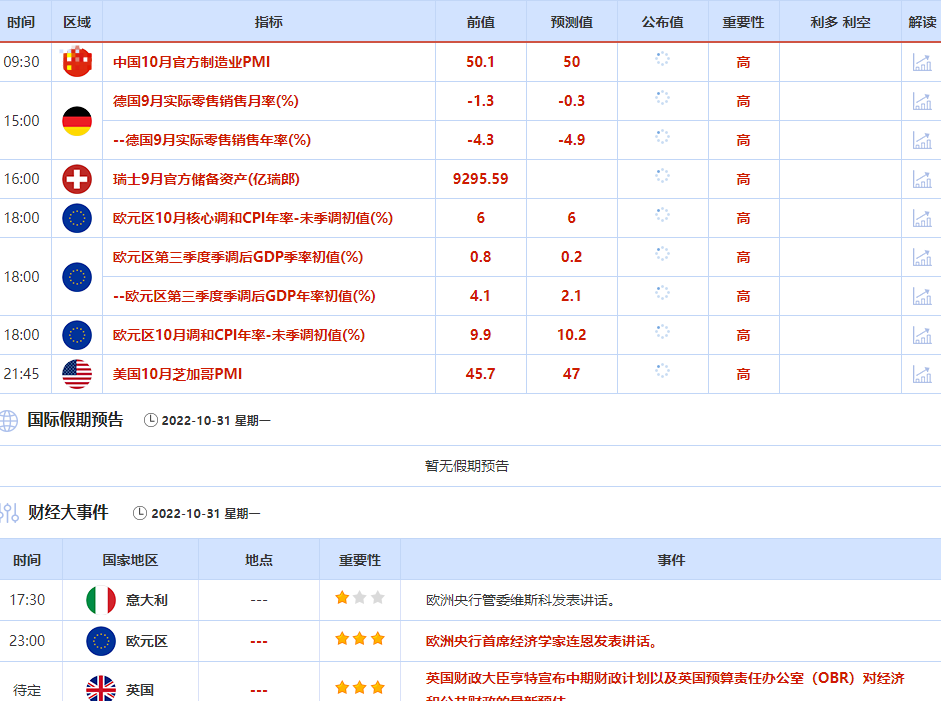在美国经济数据公布后,美元上涨0.3%,指标美国国债收益率也攀升。 人们普遍预计美联储将在11月1-2日的政策会议上加息75个基点。对于12月,交易员们多数预计将加息50个基点。