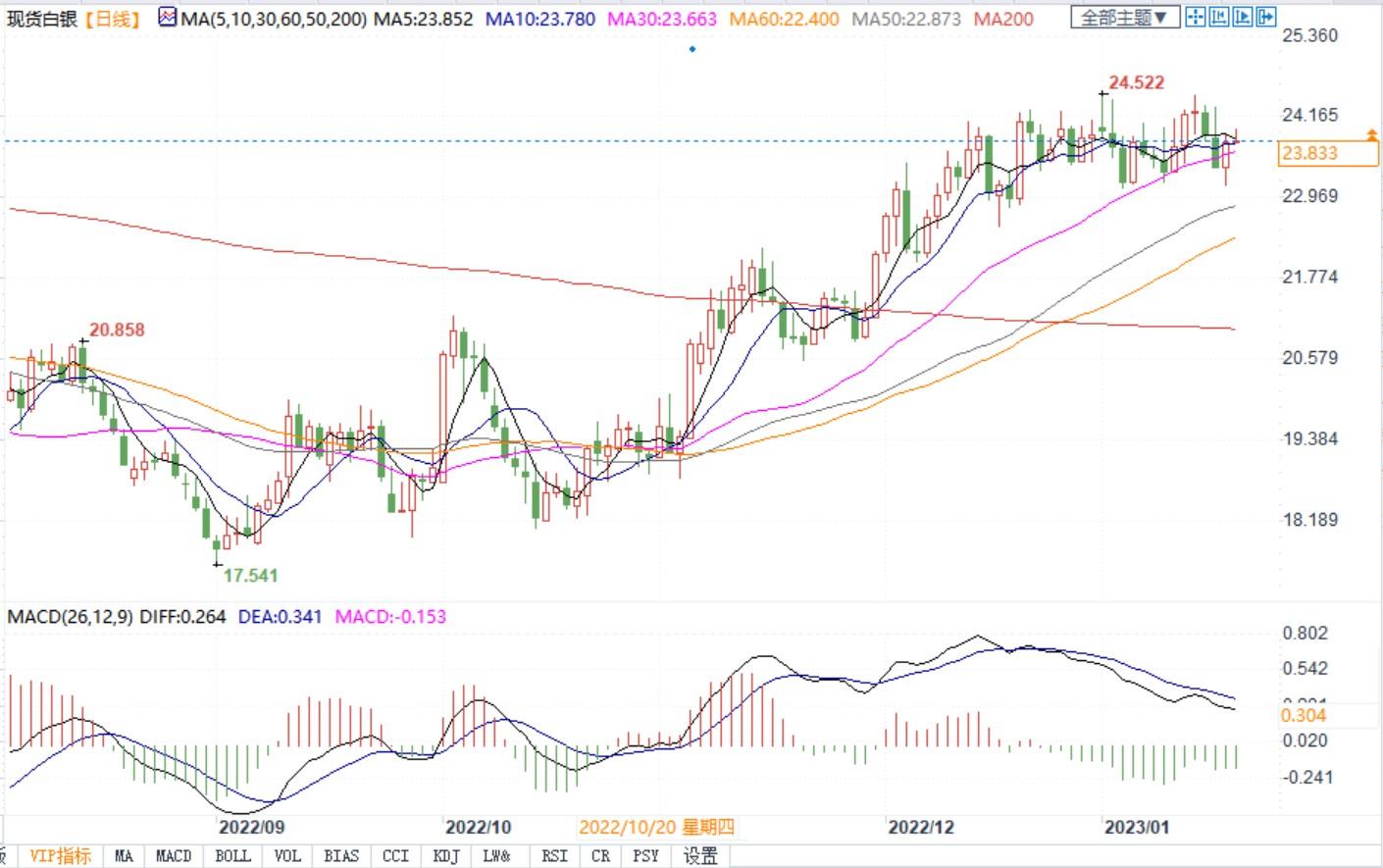 1980年,在通货膨胀率13.5%的背景下,现货银价格创下49.45美元的历史新高,高于1976年的4美元左右,当时的通货膨胀率为5.7%。在通货膨胀率为6.5%的背景下,现货白银最新交易价格为每盎司24美元左右。