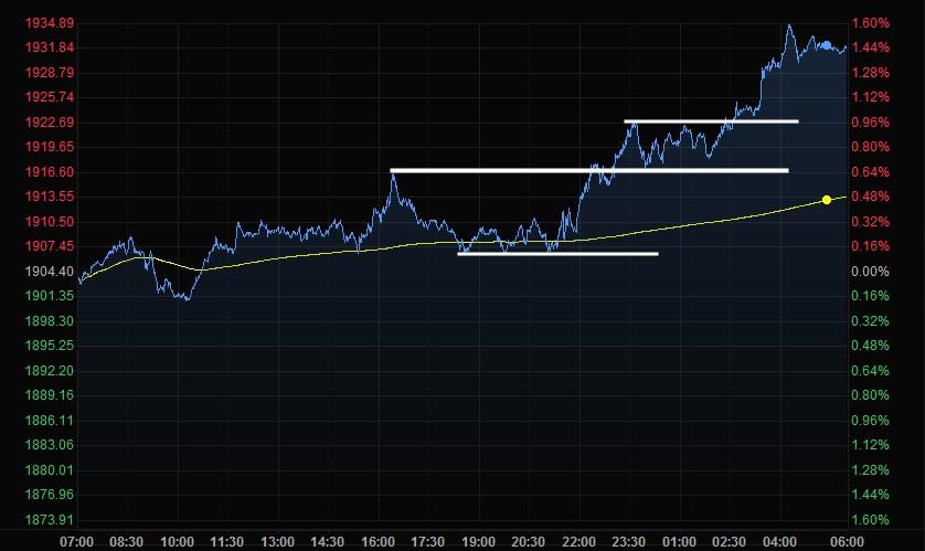 从周四的分时图来看,金价在1923.5、1916.5和1906.5附近分别存在一些支撑。