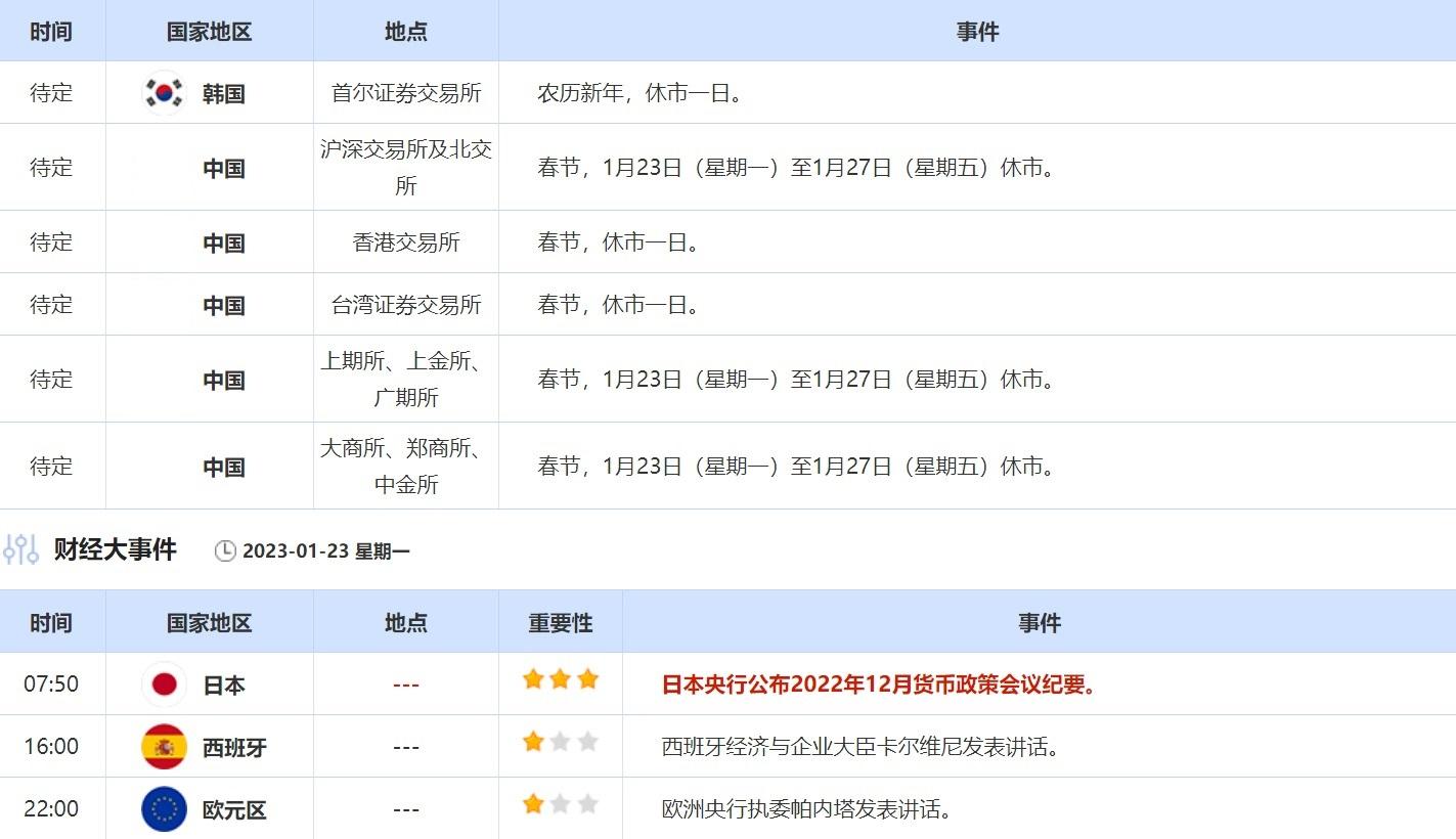1月23日,日本央行将公布2022年12月货币政策会议纪要,投资者可以从中了解官员的更多想法和决议更多细节。