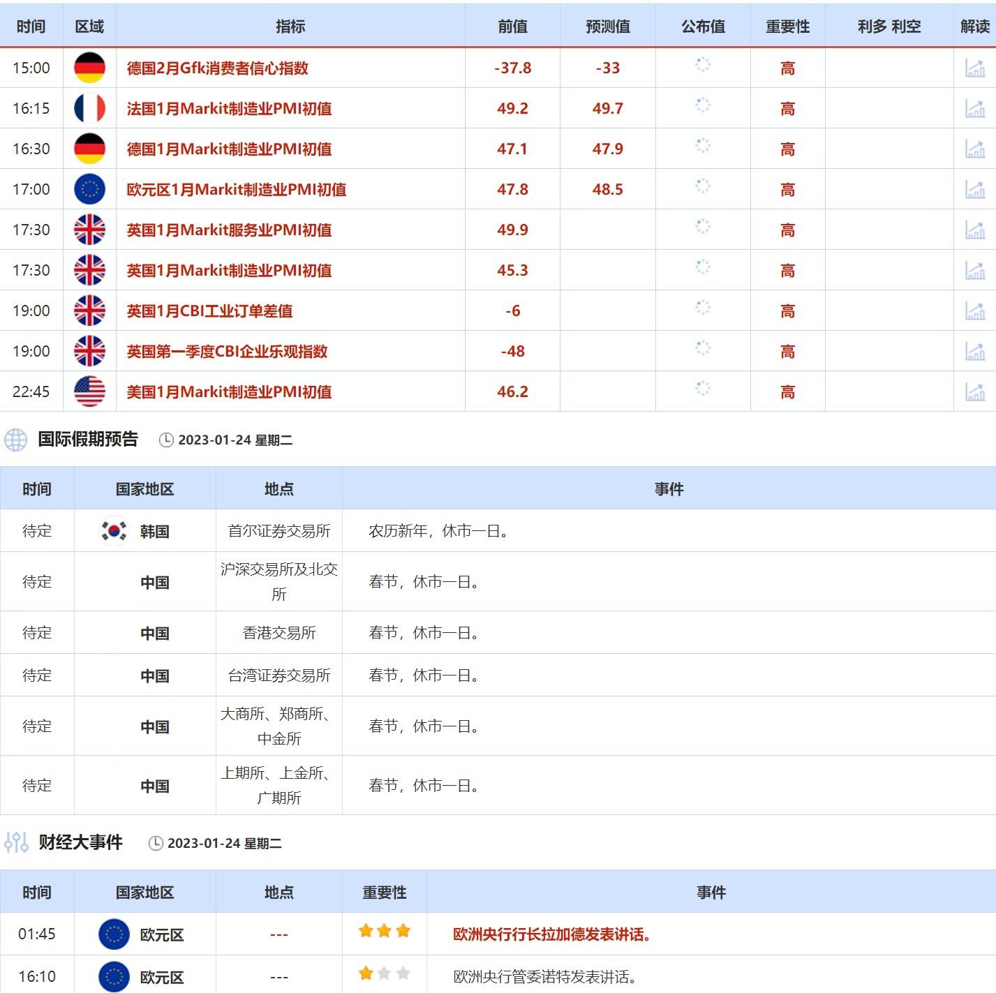 ②1月24日(周二)关键字:欧元区1月制造业PMI,欧洲央行行长拉加德