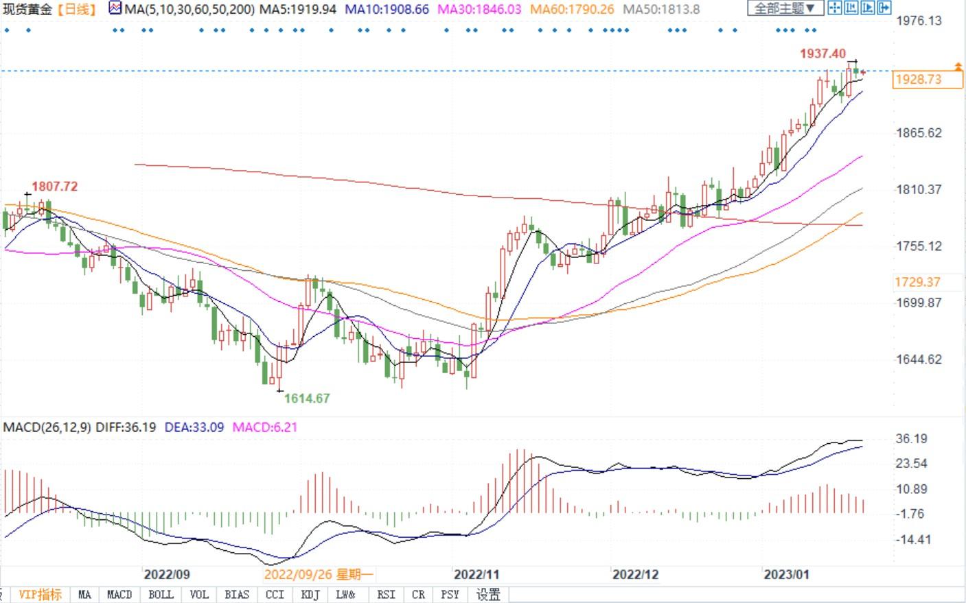 北京时间1月23日8:30,现货黄金报1928.89美元/盎司