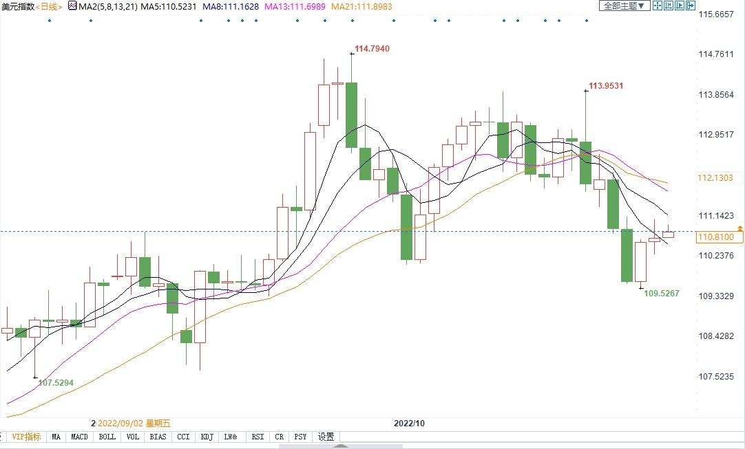 北京时间10月31日13:54,美元指数报110.88
