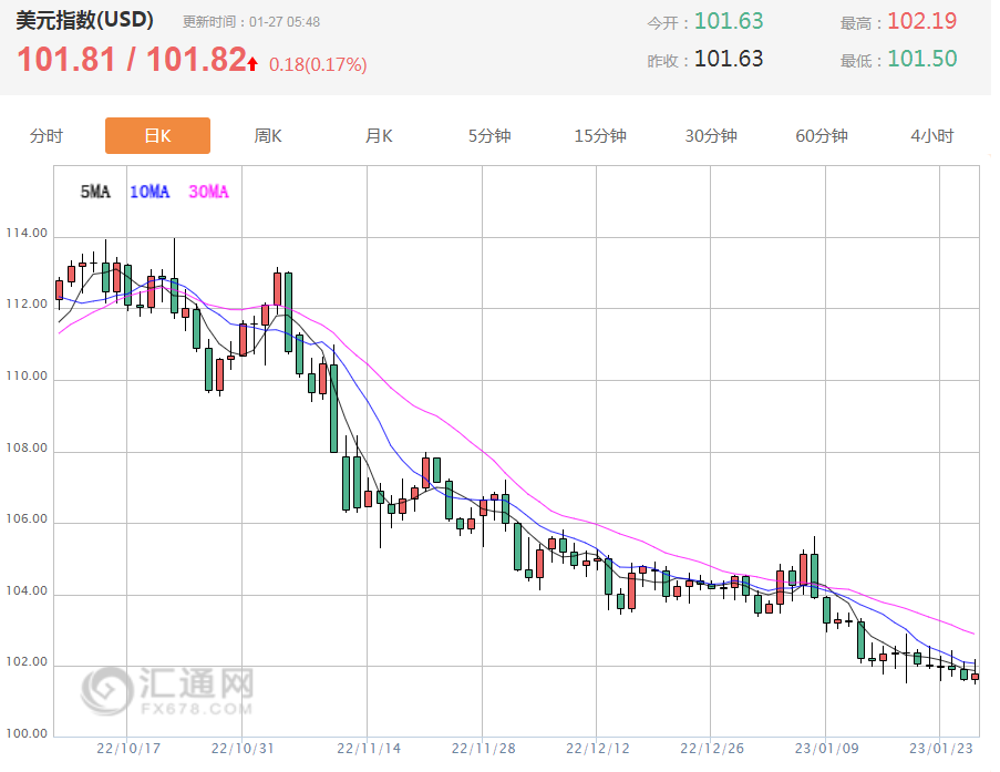 汇通财经APP讯——北京时间周五(1月27日),美元兑欧元周四走高,此前公布的数据显示美国经济在第四季保持强劲增速,支持美联储在更长时间内维持鹰派立场,金价下跌;油价上涨约2%,因市场预期,随着第一大石油进口国重新开放经济,以及美国经济数据向好,全球需求将增强。