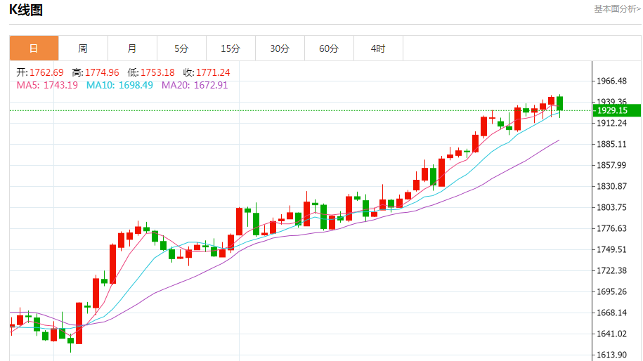 金价周四下跌,因美元走强,美国经济数据强劲,可能促使美联储在更长时间内保持高利率。现货金下跌0.8%,至每盎司1931.37美元,此前曾下滑至1918.49美元。稍早,金价还创下了2022年4月以来最高1949.09美元。