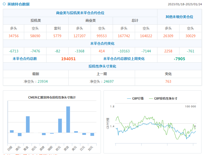 贵金属方面:截至1月24日当周,COMEX黄金投机者将净多头头寸增加13273手,至106631手,白银投机者将净多头头寸减少7119手,至20923手,铜投机者将净多头头寸增加5867手,至41116手。