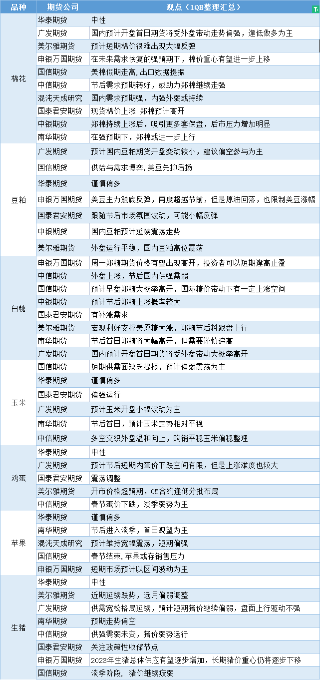 期货公司观点汇总一张图:1月30日农产品(棉花、豆粕、白糖、玉米、鸡蛋、生猪等) Posted on Jan 30, 2023 Jan 30, 2023 汇通财经APP讯——期货公司观点汇总一张图:1月30日农产品(棉花、豆粕、白糖、玉米、鸡蛋、生猪等) 标题: 期货公司观点汇总一张图:1月30日农产品(棉花、豆粕、白糖、玉米、鸡蛋、生猪等) 地址: jnwq0531.cn/article/1808.html