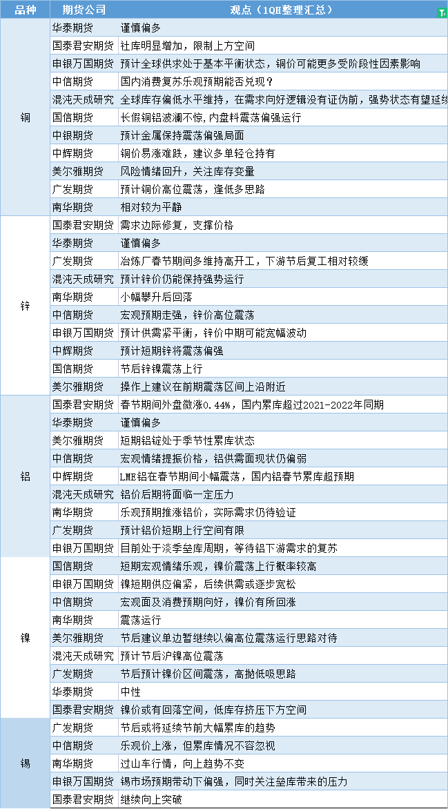 期货公司观点汇总一张图:1月30日有色系(铜、锌、铝、镍、锡等) Posted on Jan 30, 2023 Jan 30, 2023 汇通财经APP讯——期货公司观点汇总一张图:1月30日有色系(铜、锌、铝、镍、锡等) 标题: 期货公司观点汇总一张图:1月30日有色系(铜、锌、铝、镍、锡等) 地址: jnwq0531.cn/article/1810.html