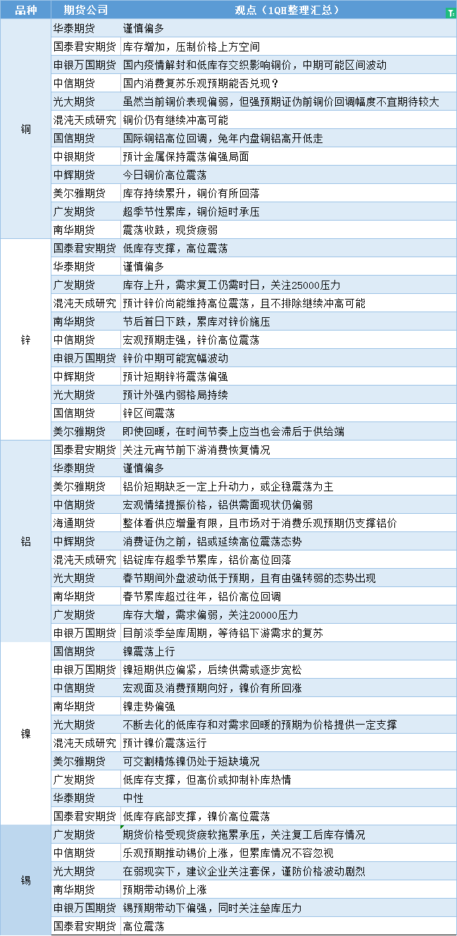 期货公司观点汇总一张图:1月31日有色系(铜、锌、铝、镍、锡等) Posted on Jan 31, 2023 Jan 31, 2023 汇通财经APP讯——期货公司观点汇总一张图:1月31日有色系(铜、锌、铝、镍、锡等) 标题: 期货公司观点汇总一张图:1月31日有色系(铜、锌、铝、镍、锡等) 地址: jnwq0531.cn/article/1834.html