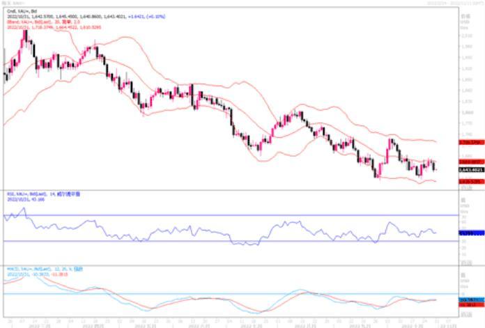 上周五(10月28日)美市尾盘,现货黄金收报1643.90美元/盎司,当周下跌19.36美元或1.16%,当周最高触及1674.67美元/盎司,最低触及1637.90美元/盎司。