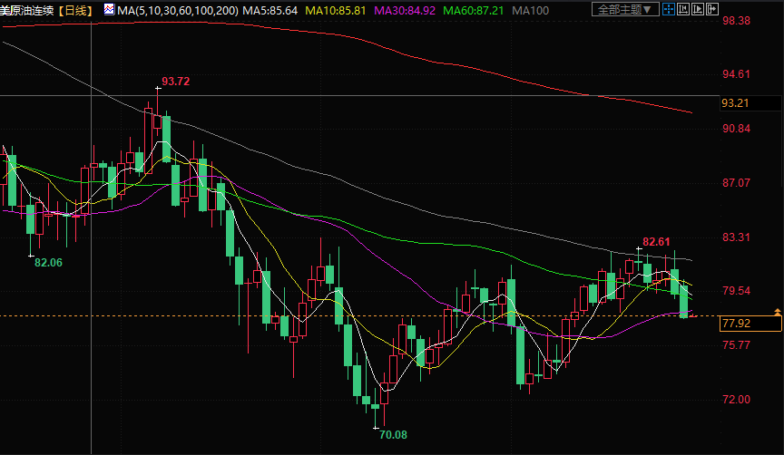 汇通财经APP讯——1月31日(周二)亚市盘初,美油交投于77.92美元/桶附近;油价周一延续跌势,下跌超2%,因主要央行即将加息,这将打击需求,且俄罗斯出口依然强劲。