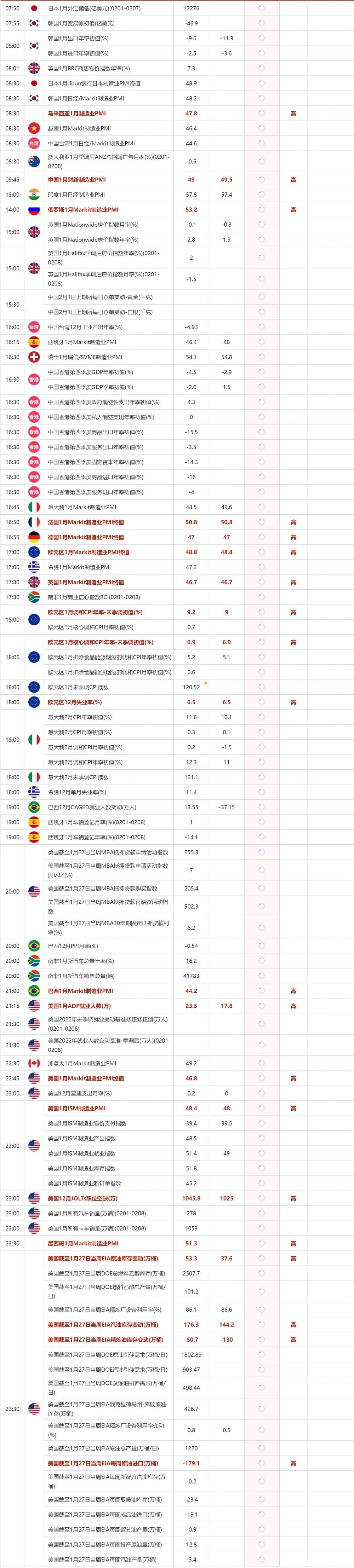 后续及时更新的财历数据请关注:【汇通网2月1日财经日历】