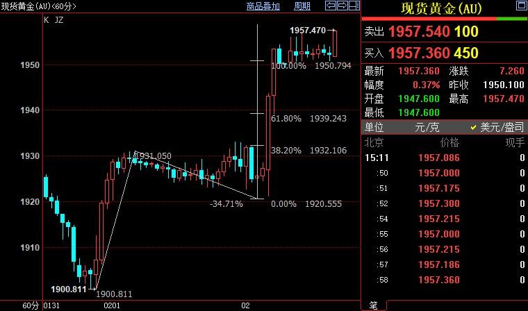 汇通财经APP讯——周四(2月2日),国际金价创去年4月下旬以来新高至1957.14美元/盎司。隔夜,美联储如期放慢加息步伐至25个基点,且主席鲍威尔的言论被市场解读为鸽派,金价大幅收涨逾1.1%。金价后市上看1969美元。