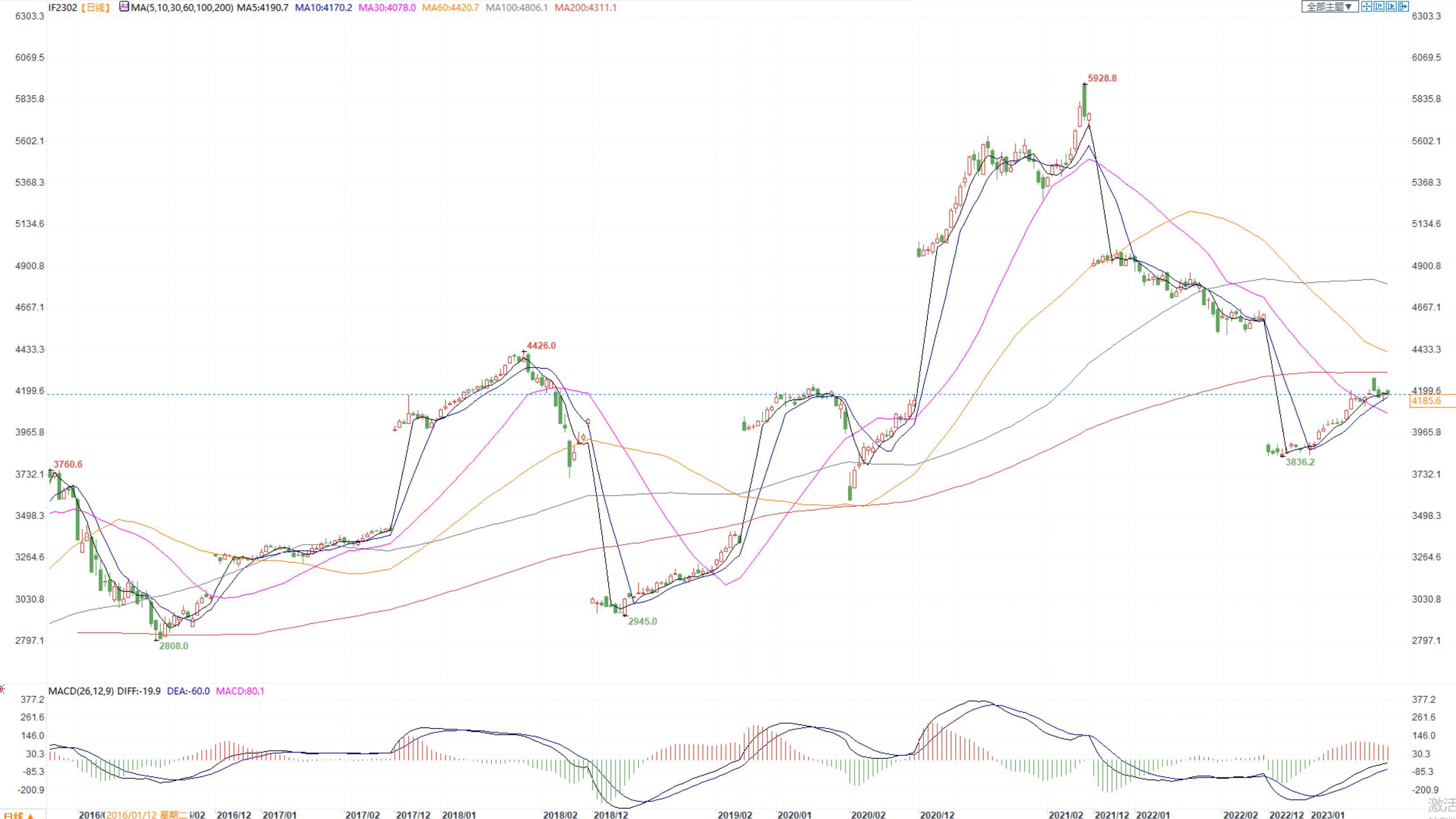【今日涨跌】四大期指涨跌互现。IH2302收盘价为2820.2,收涨0.01%;IF2302收盘价为4185.6,收跌0.15%;IC2302收盘价为6369,收涨0.13%;IM2302收盘价为6928,收涨0.26%。