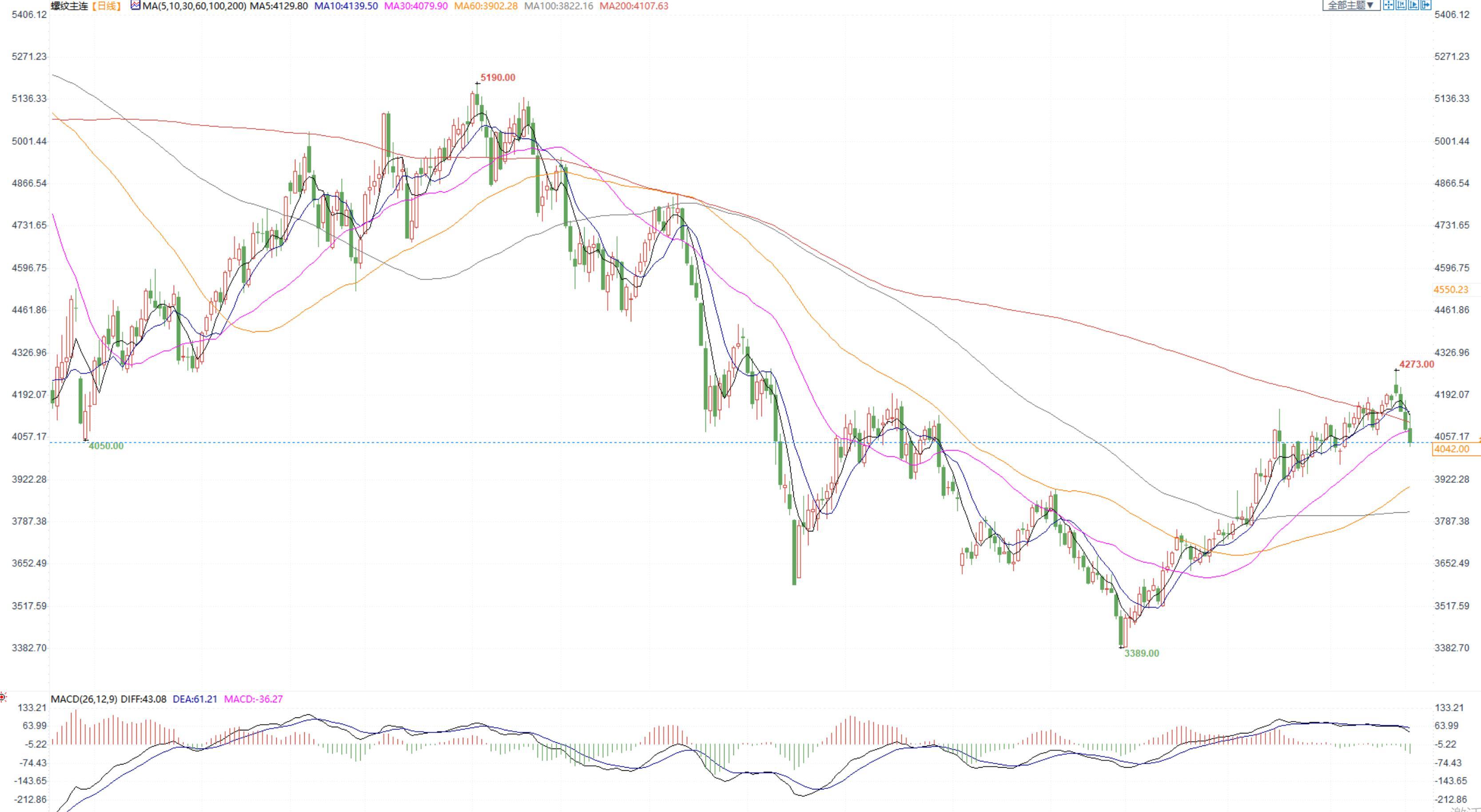 价格:今日黑色系整体继续延续跌势,市场情绪转弱。螺纹钢2305合约小幅回升后,午后再次明显下跌,收盘价4042元/吨,收跌1.96%。上海中天现货价4190元/吨,较昨日价格暂稳。