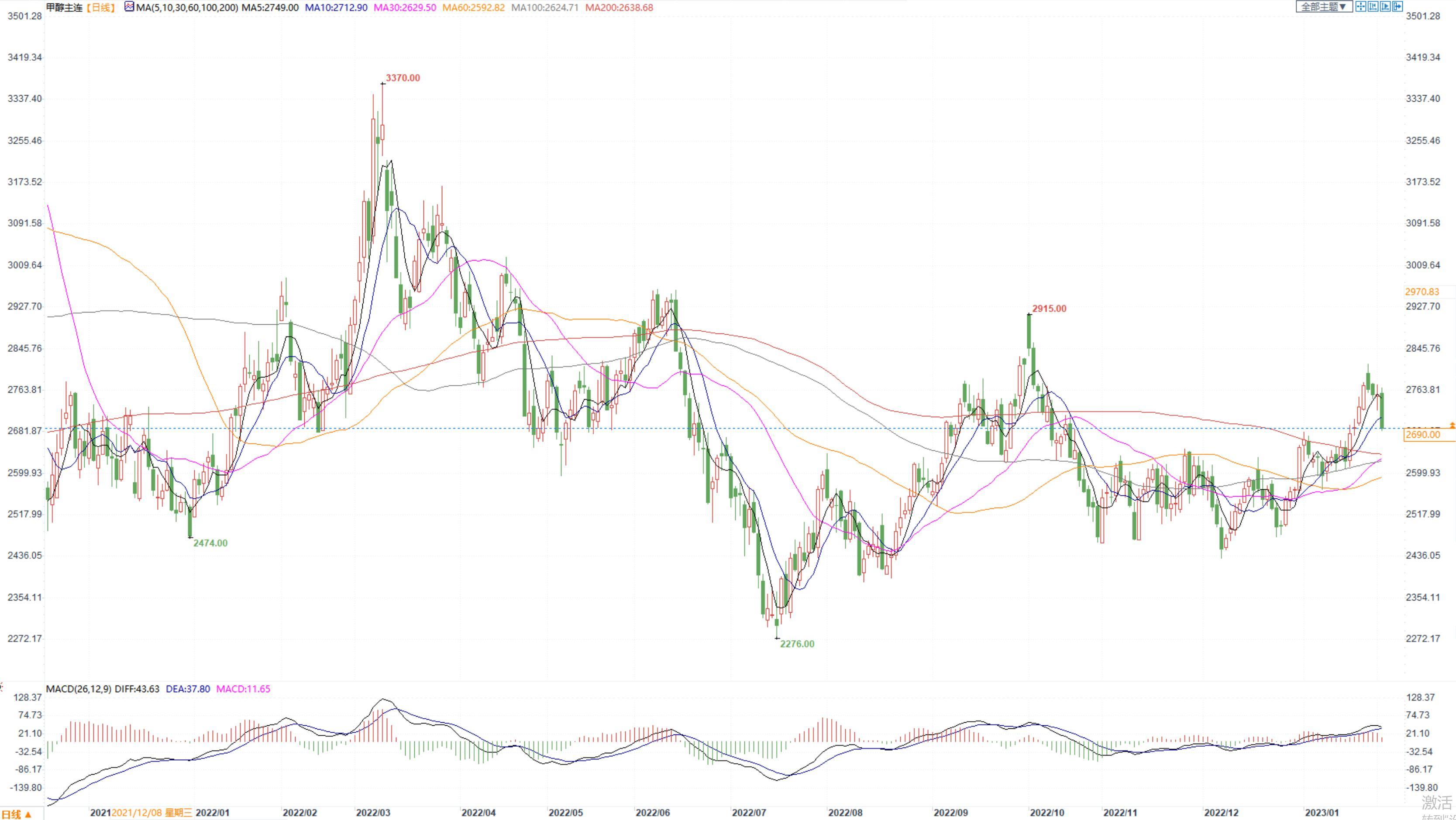 期货市场,甲醇2305合约跌超2%,收盘价2690。张家港地区参考价格2780元/吨附近现汇出罐。