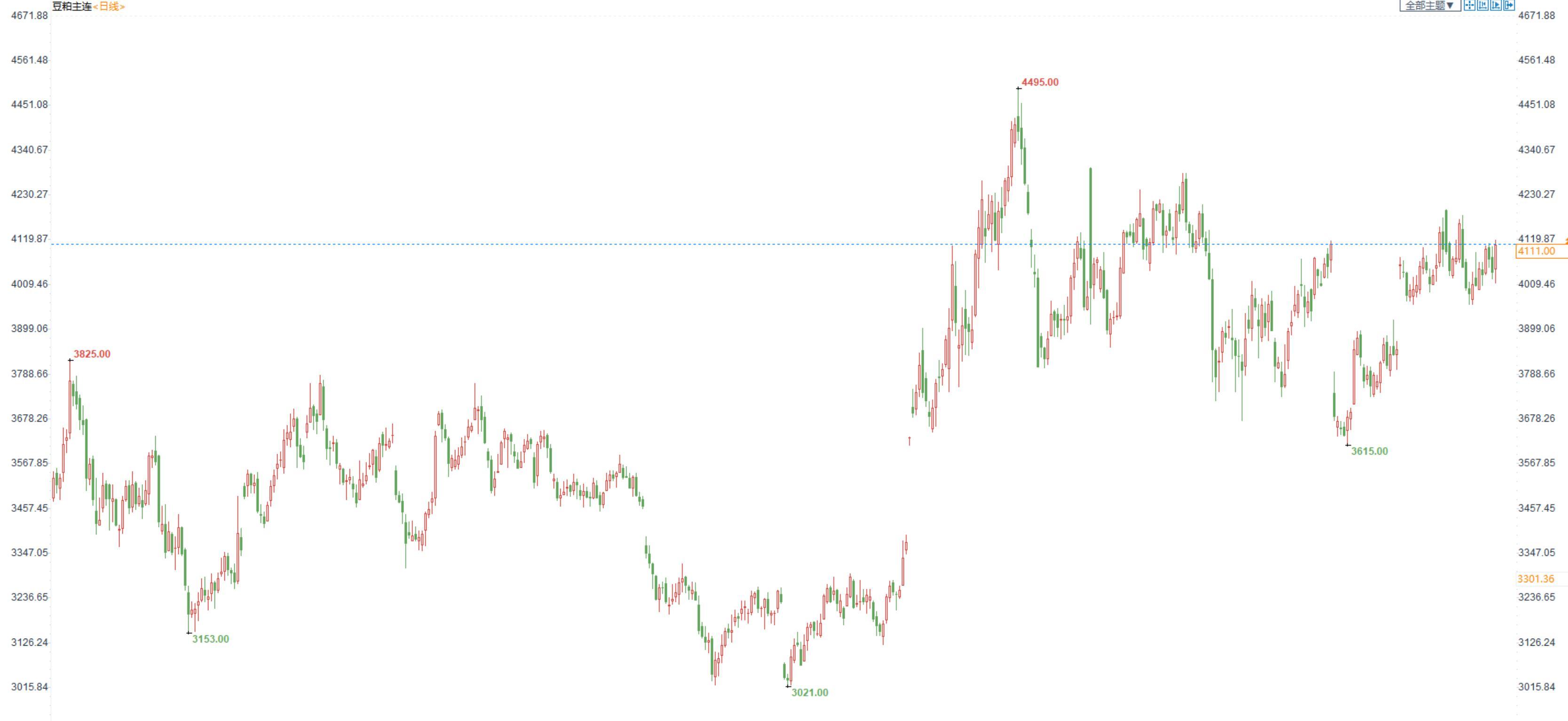 豆粕2301合约日内涨1.71%,收盘价4111元/吨,现货张家港43%蛋白豆粕5380元/吨。