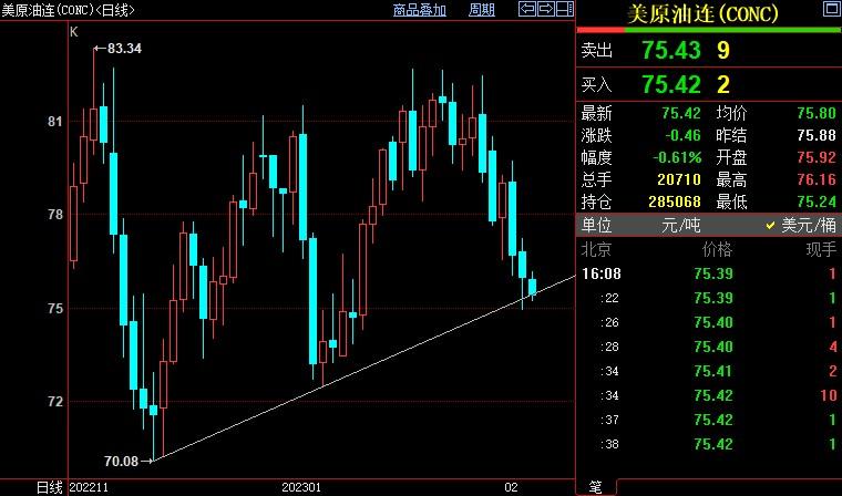 汇通财经APP讯——周五(2月3日),国际油价继续承压,尽管市场等待中国燃料需求复苏的进一步迹象,但其他主要经济体迫在眉睫的衰退,NYMEX原油后市下看74.31美元。投资者也在关注欧盟如何对俄成品油价格设限。