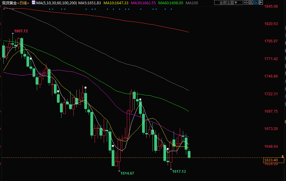 High Ridge Futures金属交易主管David Meger表示,加息预期、美元的相对强势和美债收益率上升等因素共同作用,继续让金价承压。