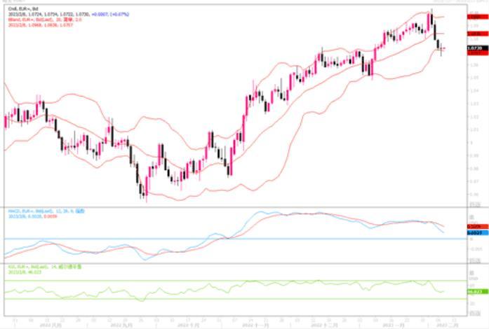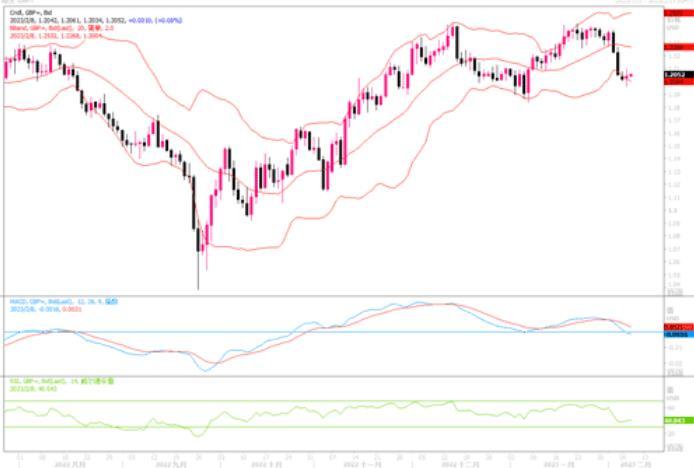 美元周二(2月7日)从一个月高位回落,因为周二美联储主席鲍威尔重申了上周关于通胀已经开始放缓的声明,称他预计今年通胀将大幅下降。尽管上周五的美国非农就业报告大放异彩,鲍威尔并没有恢复鹰派立场,这使投资者相信,美联储不可能较市场已经消化的进一步收紧政策。欧元兑美元变化不大,在鲍威尔讲话后从稍早曾触及1.0670美元的五周最低拉升回1.07楼上。当前对于欧元存在的有利因素是:欧央行或在试图纠正市场对2月利率决议和声明鸽派解读、自身贸易条件在改善、中国经济增长的提振、与美联储政策息差的收窄。不利因素则有俄乌冲突局势的升级。日线图上上周二收市出现十字星,且整体走势仍保持在上升通道中,因此欧元未出现严重衰退迹象。4小时图上,MACD绿色动能柱有所收敛,RSI自超卖区域勾头,若能坚守1.0660-1.07区域,则欧元或存在反弹走高机会。短线还需防范来自美国经济数据所带来的一些冲击。