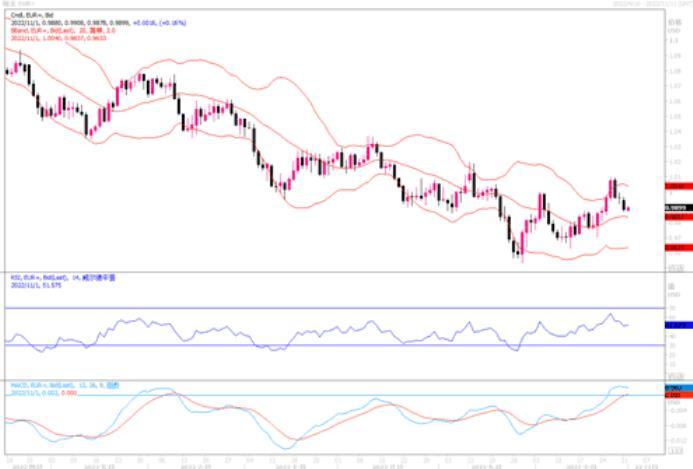 美国商务部公布9月个人消费支出物价指数(PCE)环比上升0.3%,与8月份的涨幅相当,在截至9月的12个月中,PCE价格指数增长了6.2%,与8月的增幅相同,显示核心通胀压力依然高企,使得市场普遍预计美联储将在11月2日的政策会议上加息75个基点,将指标利率提高至3.75%-4.00%,提振美元,压制非美货币。受此影响,欧元周一下行,当天开盘0.9946,收盘0.9883。