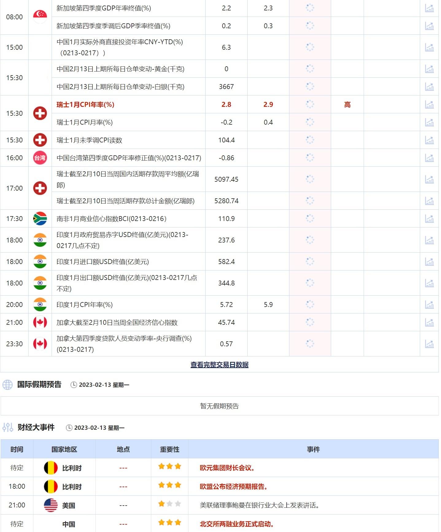 后续及时更新的财历数据请关注:【汇通网2月13日财经日历】