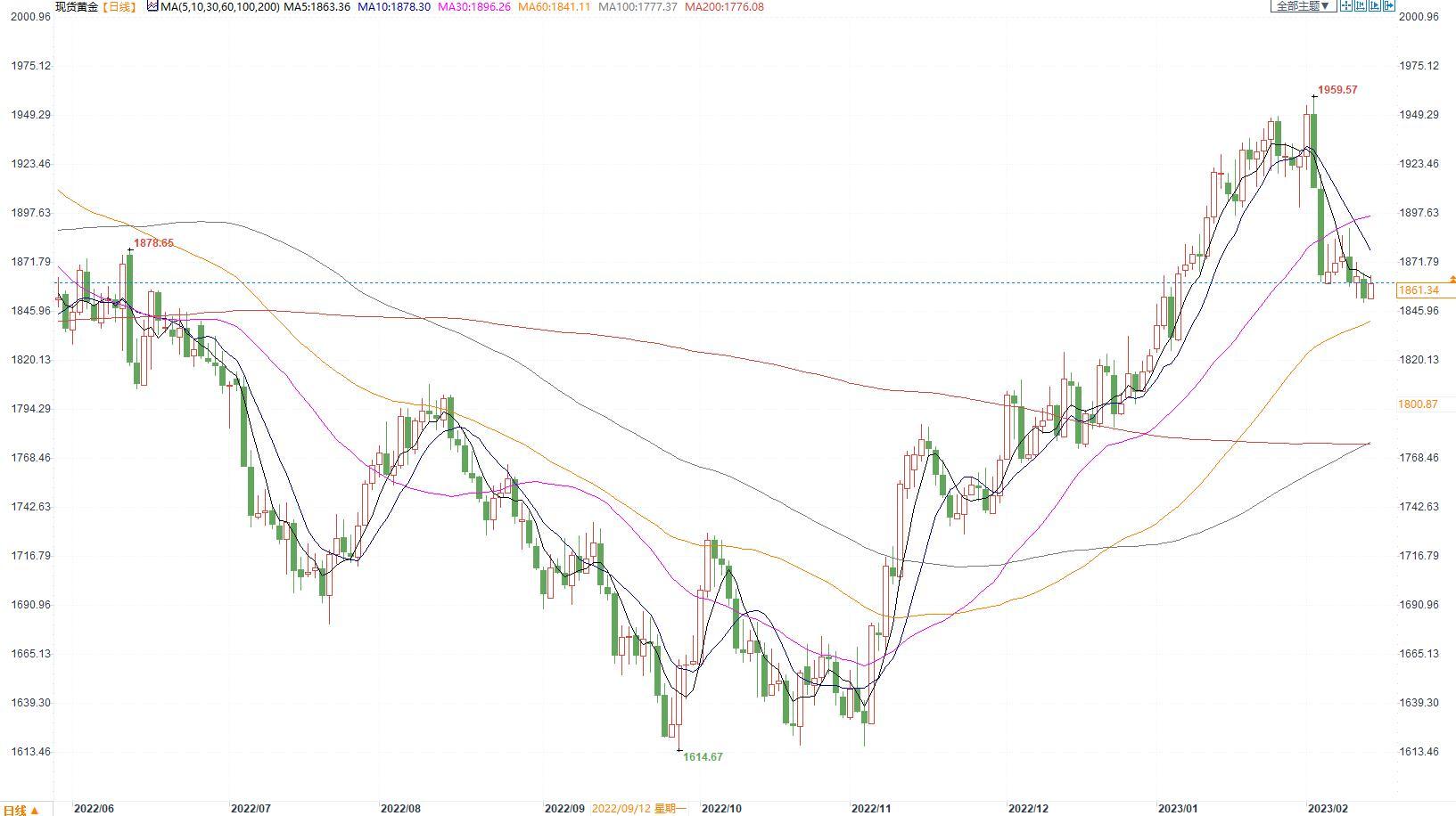 【今日行情】金银均收涨。AU2304收盘价为412.74,收涨0.14%;AG2306收盘价为4953,收涨0.10%。日内美元指数震荡走低,但仍处于103关口之上,十年期美债收益率也维持在3.7%上方,短期对金银支撑减弱。