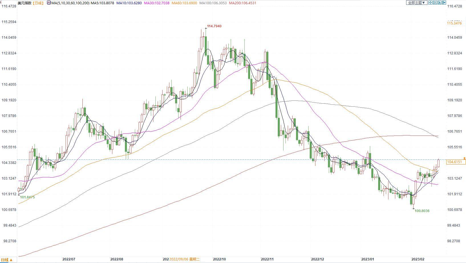 汇通财经APP讯——周五(2月17日)当周美元指数震荡攀升,势将连续三周上涨。高于预期的通胀数据和美联储官员的鹰派言论支持美元。与此同时,地缘政治风险,全球经济衰退的担忧情绪,这也激发了美元的避险需求。