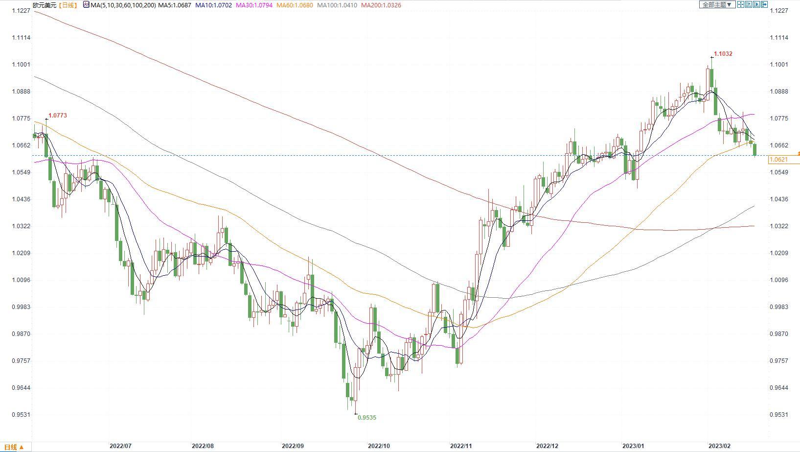 欧洲央行高利率的预期始终限制欧元下跌。欧洲央行行长拉加德周三晚间发表讲话时肯定了3月份的计划。她称,在那之后,我们将评估货币政策的后续路径。紧缩力度不足将导致通胀持续高于我们的目标,而过度紧缩则可能导致通胀超过目标,重回长期低于目标的水平。