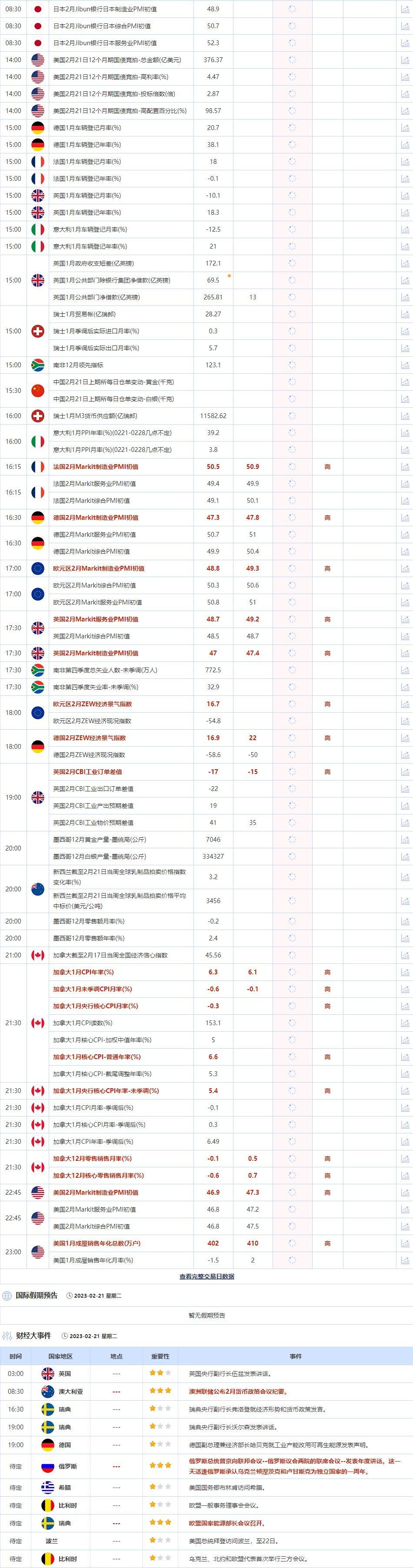 后续及时更新的财历数据请关注:【汇通网2月21日财经日历】