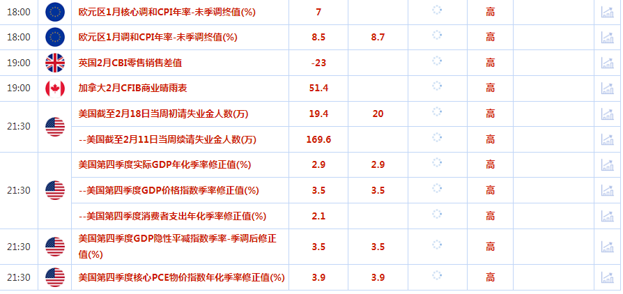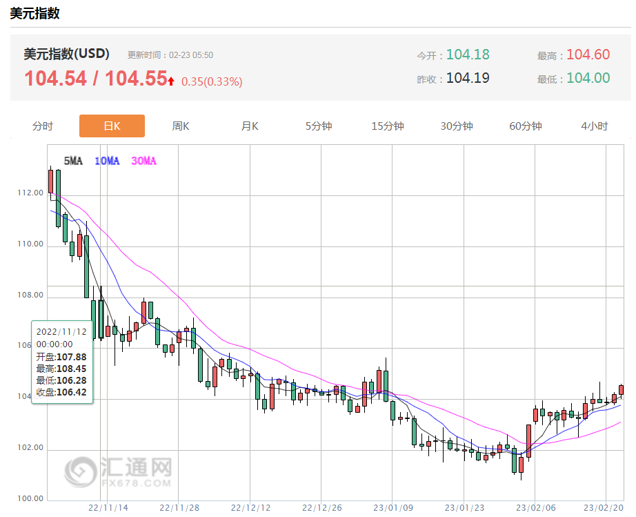 汇通财经APP讯——2月23日(周四),美元周三走强,此前美联储公布会议记录显示,决策者决心利用较慢的加息步伐来抑制持续的高通胀,金价下跌;油价下跌至两周最低,因投资者更加担心,最近的经济数据将意味着各国央行将更激进地加息,这将重压经济增长和燃料需求。