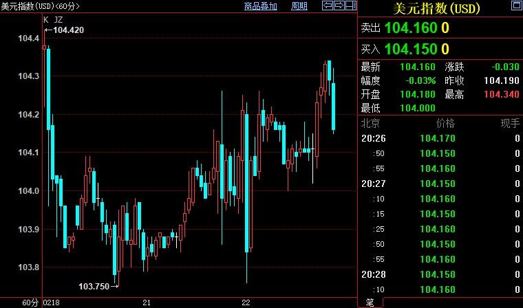 北京时间20:27,现货黄金上涨0.41%至1842.57美元/盎司;COMEX期金主力合约上涨0.49%至1851.5美元/盎司;美元指数下跌0.04%至104.162。