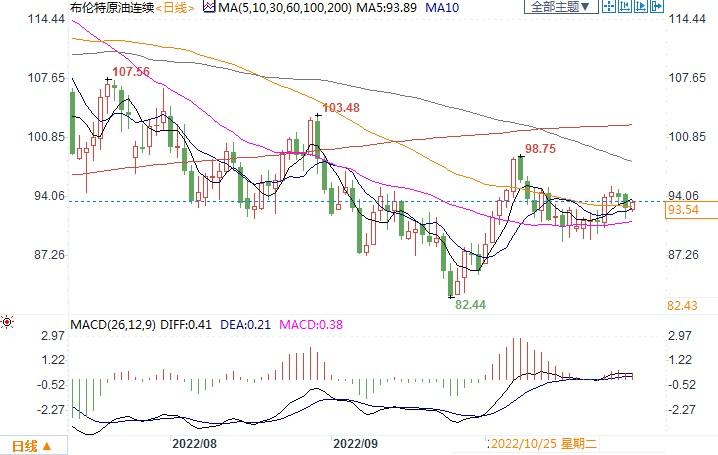 北京时间11月1日13:02, 布伦特原油连续报93.56美元/桶