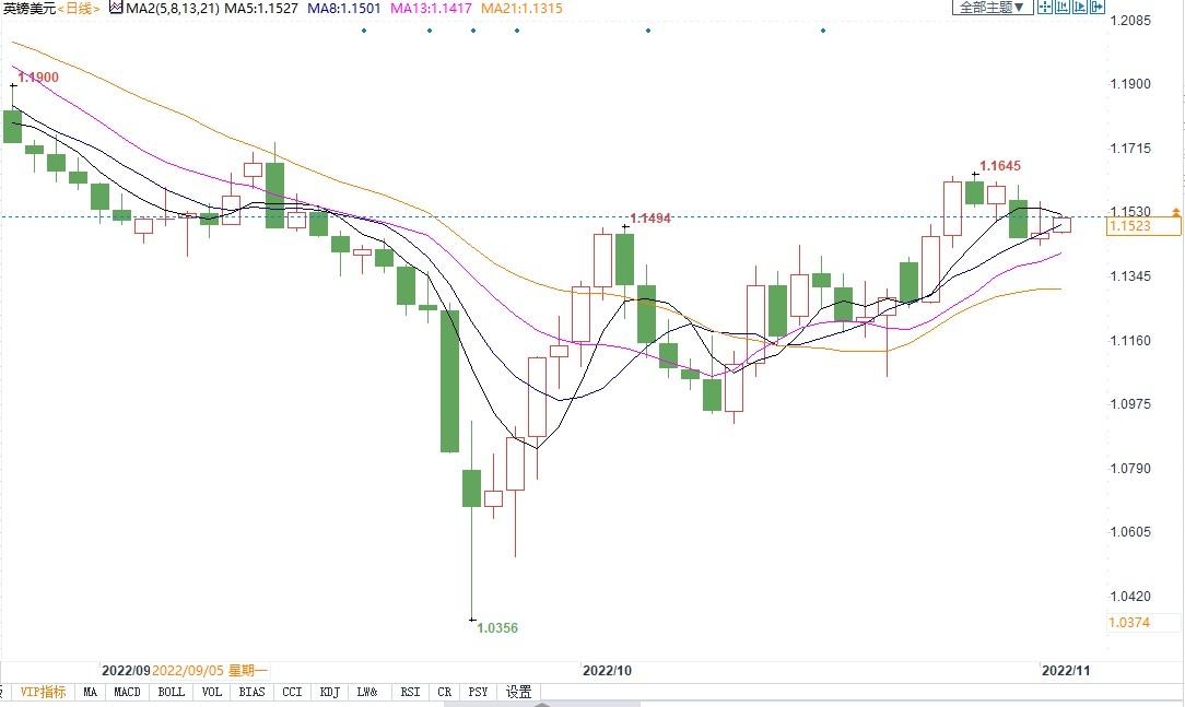 北京时间11月2日11:24,英镑兑美元报1.1521/23
