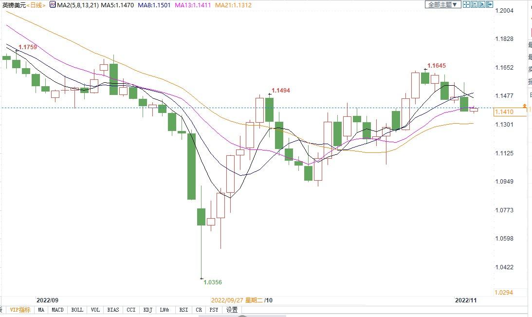 北京时间11月3日13:54,英镑兑美元报1.1409/11。