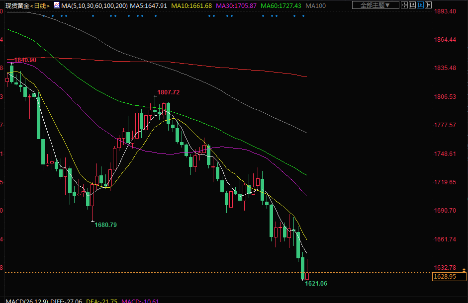 美元从20年高位回落,促使投资者转向黄金,黄金在上一交易日触及2020年4月以来最低的1620.20美元。芝加哥联邦储备银行主席埃文斯(Charles Evans)周二表示,美联储今年至少需要再加息100个基点。