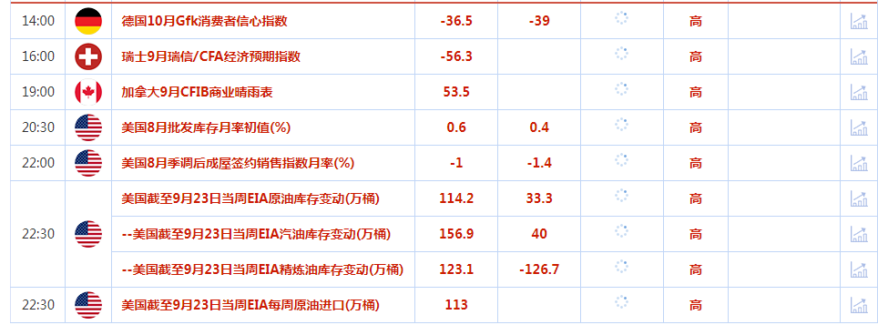 北京时间周三(9月28日)亚市早盘,美元指数交投于114.19附近; 美元周二在震荡交投中没取得什么进展,盘中拉锯,从20年来的最强水平回落,尽管在美联储决策者谈论进一步加息的情况下,对风险较高资产的胃纳仍然很弱,金价从两年半低位反弹,但迫在眉睫的加息风险依然存在;油价从九个月低点回升超2%,受益于飓风伊恩到来之前美国墨西哥湾的供应受限。