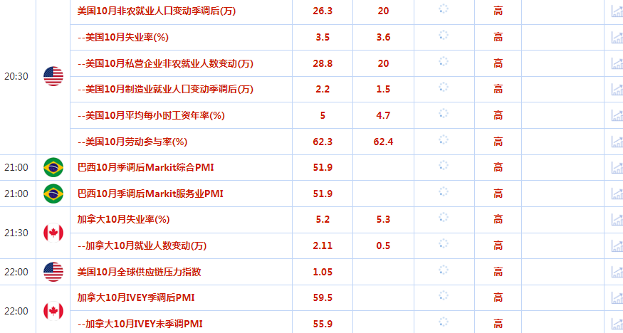 市场现在关注周五公布的美国10月非农就业报告,根据路透调查,华尔街经济学家预测将新增就业岗位20万个,失业率料为3.6%。
