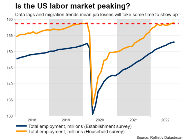 尽管如此,所有领先指标都在警告未来会有麻烦。商业调查、库存水平、消费者信心指标和反向收益率曲线都表明,美国经济衰退迫在眉睫。问题是,这一切什么时候才能反映在通胀和就业数据中?美联储需要在这两个领域看到改善,然后才会做出让步。