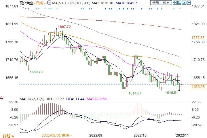 北京时间11月4日10:53,现货黄金报 1635.98美元/盎司