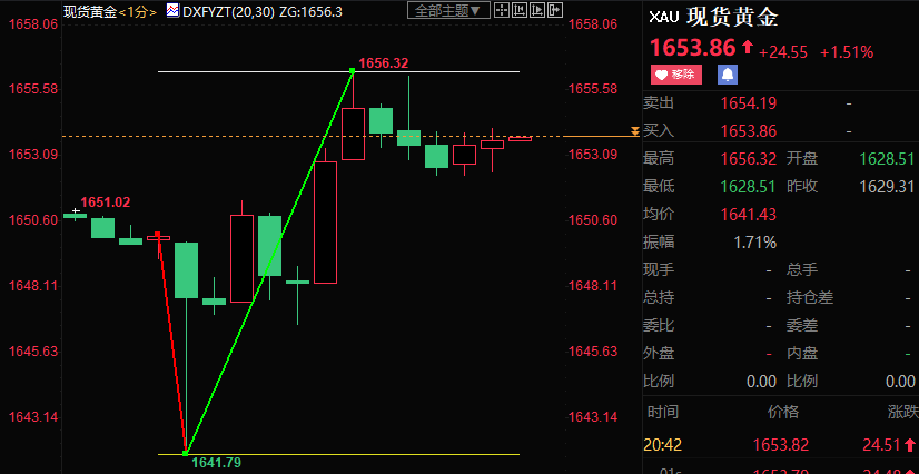 北京时间周五(11月4日)20:30,美国劳工部公布的10月非农数据创下2020年12月以来最小增幅,失业率上升,但劳动参与率下降。截止发稿,现货黄金急跌近8美元至1641.79美元/盎司后反弹逾14美元至1656.32美元/盎司。