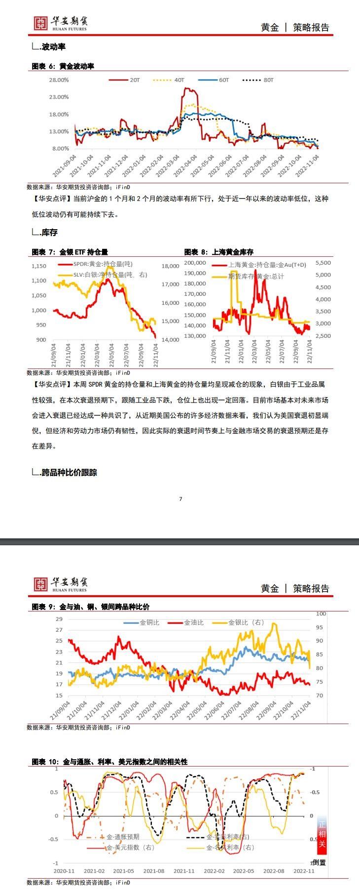 整体来看,12月加息放缓缓解金融市场近期压力,但提高终端利率又提升了未来的压力。受放缓加息和衰退预期影响,叠加人民币汇率在7.2上方,黄金未来一周继续保持震荡偏强观点。