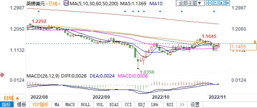 英镑兑英镑周一回升至1.14上方,上周一度跌至1.1150低点,但在1.15附近及上方将遇到技术阻力,且若10月通胀数据证明美联储周四的鹰派政策立场都是正确的,则有可能跌回上周低点。