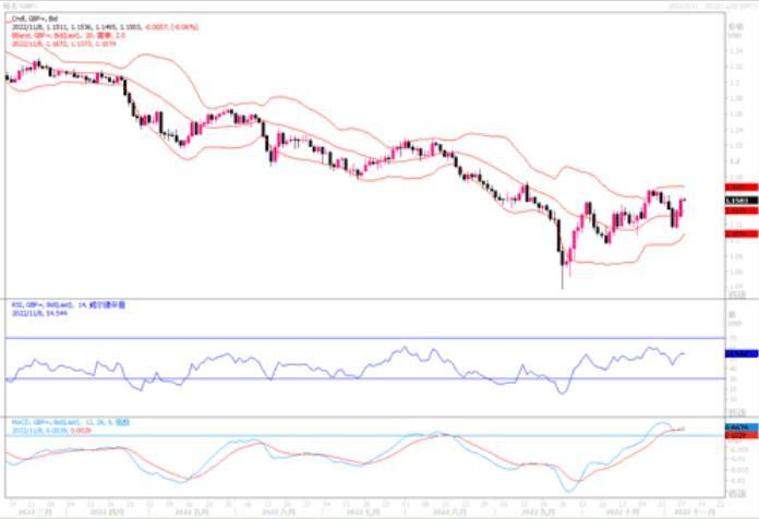 一方面,欧元区11月Sentix投资者信心指数从10月的-38.3升至-30.9,高于预期的-35.0,11月投资者信心有所改善,为升息预期提供支撑;另一方面,欧洲央行管理委员会委员维勒鲁瓦德加洛对《爱尔兰时报》表示,在基础通胀率明显见顶前,欧洲央行不能停止加息,只要基础通胀尚未明显见顶,就不应停止加息。以上消息均为欧元走势提供支撑。