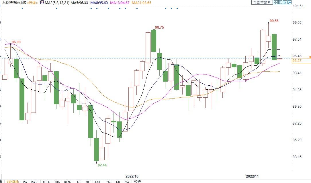 北京时间11月9日11:14,布伦特原油主力合约价格报95.24美元/桶。