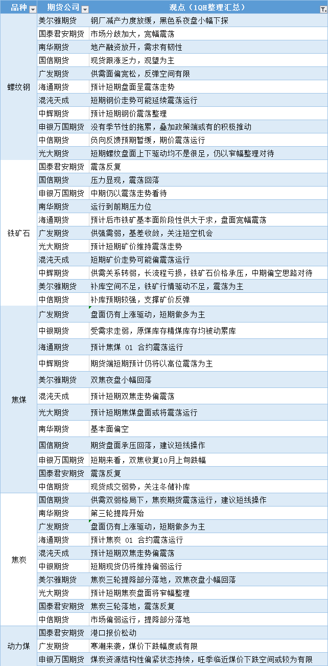 期货公司观点汇总一张图:11月10日黑色系(螺纹钢、焦煤、焦炭、铁矿石、动力煤等) Posted on Nov 10, 2022 Nov 10, 2022 期货公司观点汇总一张图:11月10日黑色系(螺纹钢、焦煤、焦炭、铁矿石、动力煤等) 标题: 期货公司观点汇总一张图:11月10日黑色系(螺纹钢、焦煤、焦炭、铁矿石、动力煤等) 地址: jnwq0531.cn/article/402.html