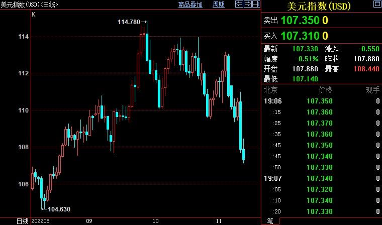 美国劳工部周四(11月10日)公布的数据显示,美国10月总体CPI年率录得7.70%,低于预期值8%,前值为8.20%;10月核心CPI年率录得6.30%,分别低于预期值和前值0.2和0.3个百分点。