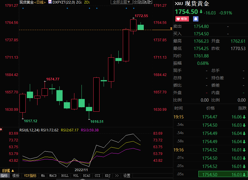 上周金价暴涨超5.3%,创2020年3月27日当周以来的最大单周涨幅,因美国10月份总体通胀年率四连降至7.7%,核心通胀年率也下降至6.3%。