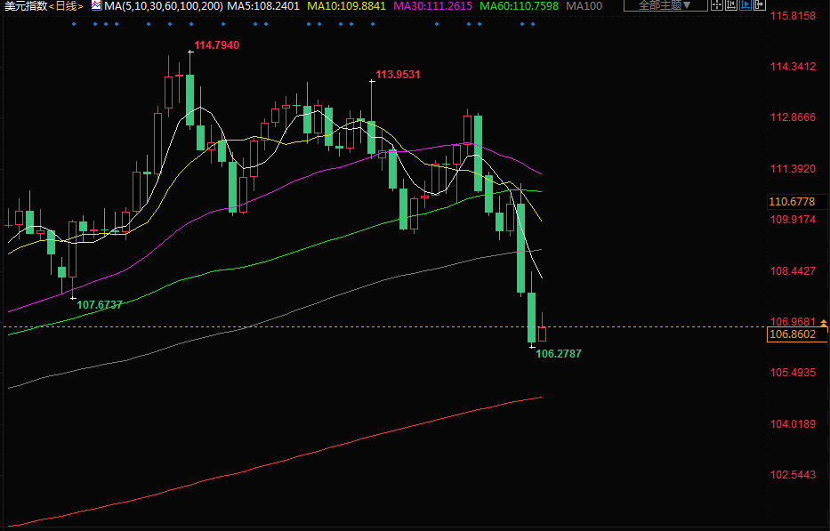 北京时间周二(11月15日)亚市早盘,美元指数交投于106.87附近;美元周一上涨,此前美联储表示不会放松对通胀的打击,金价持稳,低吸买盘抵消了美元上涨带来的压力,白银跳涨1.5%,至每盎司22美元,触及6月9日以来最高。
